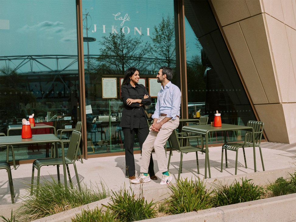 Warm spring light spills across a dark-wood counter, fresh terrazzo floor and rows of tables studded with comfy cow-horn dining chairs. Laughter ricochets off tall walls as glasses of pale rosé glint in the sun from the generous full-height window. We’re at the pre-opening of Café Jikoni, tucked under a concrete pleat of the skirt-like O’Donnell + Tuomey-designed V&A East Museum in Stratford.