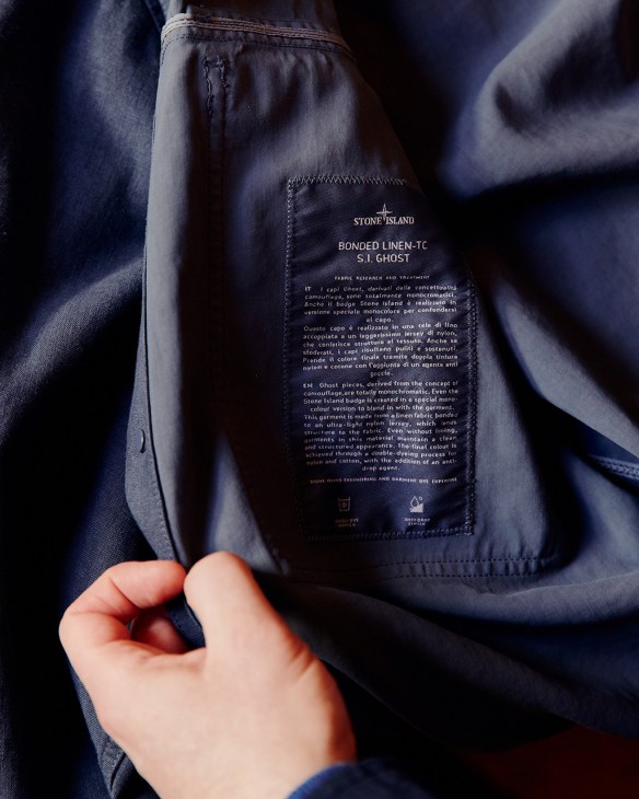 Stone Island’s Ghost collection is where the label’s fabric research comes to a point. Leather, suede and linen do the heavy lifting in this edition, each chosen for its unique attributes and rendered in a tight seasonal palette. Rooted in the idea of camouflage, Ghost looks to keep to a single hue from collar to cuff – even the brand’s iconic compass has been tonally reworked.