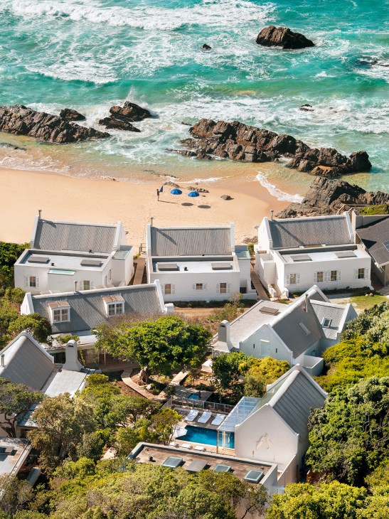 Until recently, most holidaymakers in Keurboomstrand would rent houses or stay in a hotel in the nearby town of Plettenberg Bay. That changed with the stylish arrival of Blou in Keurbooms, a collection of eight whitewashed beachside cottages from the team behind The Newt in Somerset and Babylonstoren in the Cape Winelands. Only visible from a small bay, the cottage selection boasts ocean views and bright, open spaces. The self-catering bungalows mimic Cape Dutch-style architecture, which features white walls, pitched ceilings and glass-walled kitchens along with neutral living rooms and patios (complete with those aforementioned BBQs). The best choices for booking are the ocean-facing suites with decks looking out to dolphins surfing the wild Indian Ocean. In the leafy courtyards, you’ll find a swimming pool, sauna and steam room.