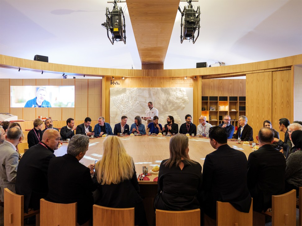 Another standout was the Ion pavilion. The Ion Riva development on Turkey’s Black Sea coast is the work of architect and developer Mehmet Kalyoncu and will feature residences designed by practices including MVRDV, Bjarke Ingels Group and Snøhetta. It was the latter that stepped forward to design Ion’s beautiful stand. At the centre of the space was a vast circular table, which hosted talks twice a day on topics such as what makes a house a home. The table also doubled as a stage for musical and dance performances. From food to materials, everything was on point.