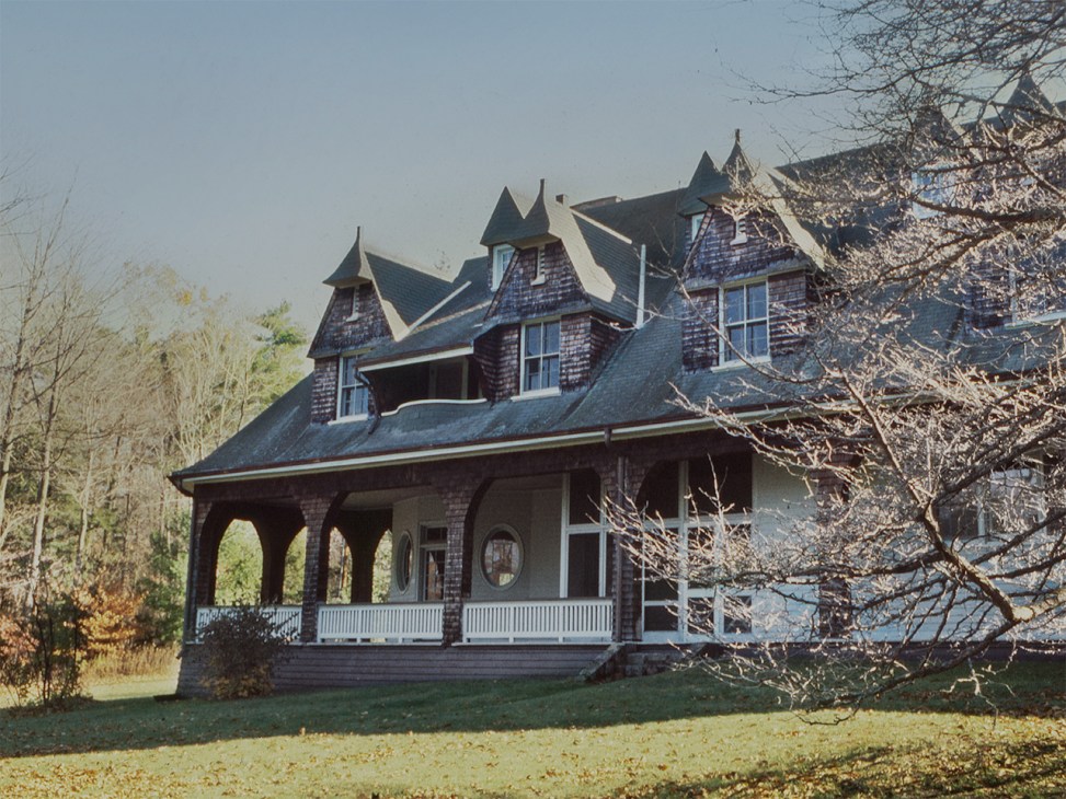 A unique and charming shingle-style summer retreat, Ladywood’s lake-facing side was peppered with miniature hooded dormers and a deep verandah.
