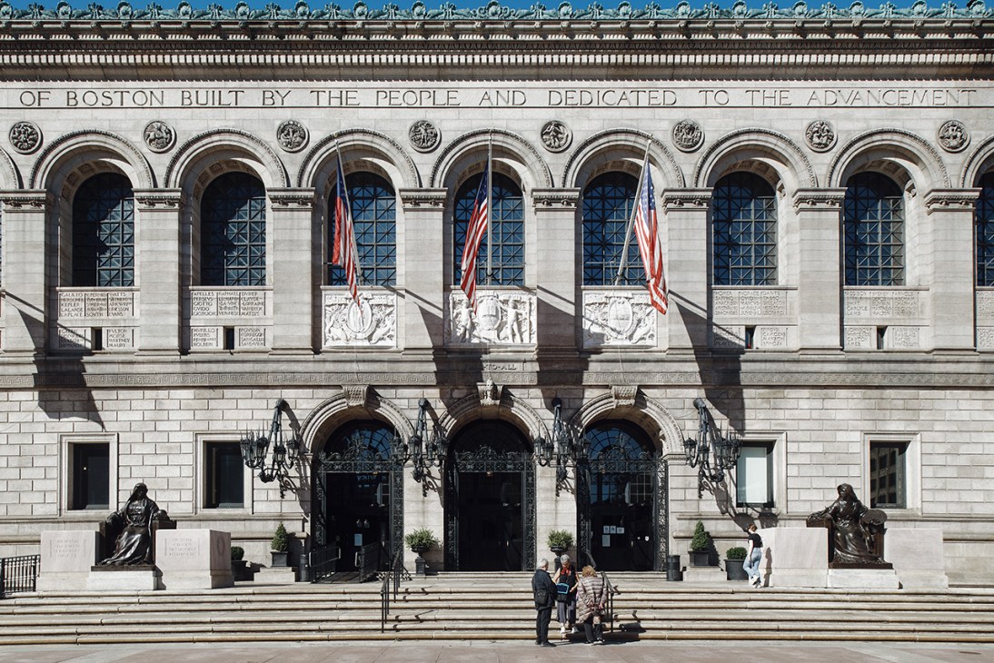 There’s a stately, almost courtly grandeur to the Boston Central Library’s McKim Building. It’s magisterial but not imposing; ornate but not baroque. Even on a cool, rainy morning, people filter through its bronze doors and crane their necks to read the names carved into its granite façade: Confucius, Mohammed, Socrates, Pushkin, Edison and Bell, alongside dozens more philosophers, artists, scientists and composers whose works are among the peaks of human achievement. A motto is inscribed above the entrance: “Free to all.”