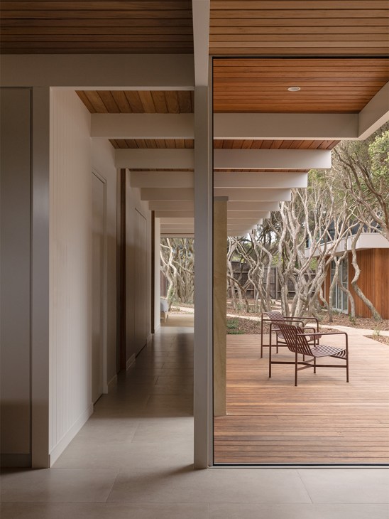 Far from being stuck in the past, however, Goodman has introduced architectural innovations that respond to the changing climate. “It’s robust and bushfire-safe,” he says, explaining that sliding corrugated-aluminium doors ensure it shuts up tightly, protecting it from the elements. This means that its owners can be assured of security when they aren’t holidaying in the residence – representative of Goodman’s ethos, one that balances aesthetics and operation. “Architecture,” he adds, “should be equally functional and beautiful.”