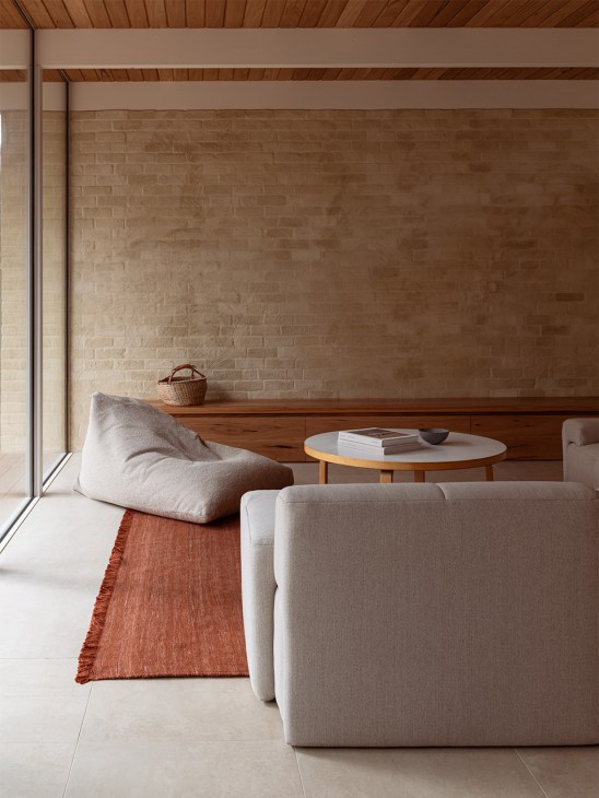 It’s an approach that’s best imbued in his residential work, which frequently draws upon cultural traditions and the landscapes in which it is embedded. “For the house at Anglesea we kept the soul of its mid-century origins intact,” says Goodman of the beach house that he renovated on Australia’s south coast. The home was sensitively rebuilt, maintaining the original L-shaped layout, allowing the living space to flow into the garden where existing native trees connect the space with the verdant landscape beyond. Brick rendered in an earthy colour and blackbutt-timber ceilings further enhance this natural atmosphere. “Every decision respected its character, while bringing it up to modern standards,” he adds.