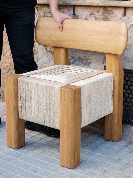 Escarfullery then employed a different carpenter, who took his money and vanished. In the end, it took him 18 months just to have a single prototype made that he was happy with. Luckily, he now has carpenters who he can rely on. Today his line-up includes the chunky Fee Fi Fo Fum chair, which is made from recycled wood and was inspired by 1947 Walt Disney film Fun and Fancy Free. Then there’s the stocky Elef, with rope seating and a wide backrest whose shape was influenced by “the ears of an elephant”.
