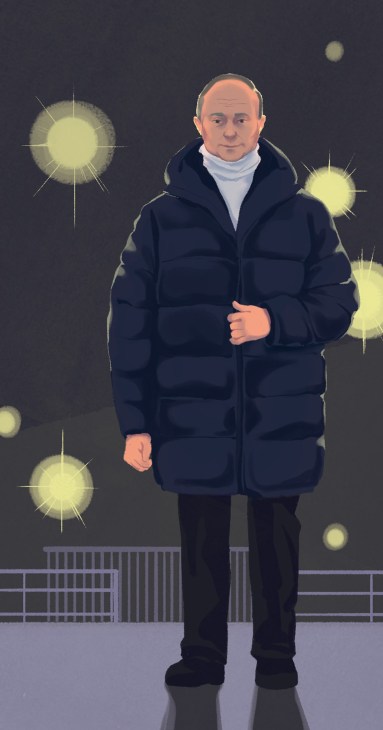 During Russia’s long winters, Vladimir Putin favours upmarket parkas, including one by Loro Piana. The white rollneck beneath it is not, as he might wish onlookers to assume, Russian Navy surplus but the work of another Italian brand, Kiton, that is likely to have set him back €2,500.