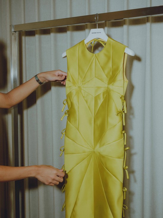 His fun, experimental occasion clothes are on display on the showroom’s top floor, carefully catalogued and ready to try on for customers seeking inspiration for a custom design. A brand highlight is the lightweight knitwear, made from a linen-and-silk yarn, which will launch in April, the hottest time of the year in Thailand. The styles are heading to Paris later this year for a pop-up boutique in the Marais called Never Normal, featuring about half a dozen Southeast Asian brands. Puipia sees it as an opportunity to introduce his label to customers who can’t make it to the atelier in Bangkok.