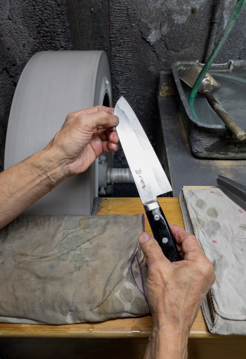 This is a family business: Yutaka grew up above the shop and he works here with his wife Misako and son Taiki, a literature graduate who will eventually take charge. Blade maintenance is a crucial part of the business – and keeps customers coming back. Ubukeya has adapted to the times, offering easier to maintain Western-style kitchen knives alongside the traditional Japanese offerings. The business is part of Tokyo’s history and its relationships with partner workshops go back generations. With more than 45 years in the knife industry, Yutaka Yazaki is a worthy guardian of this special enterprise.