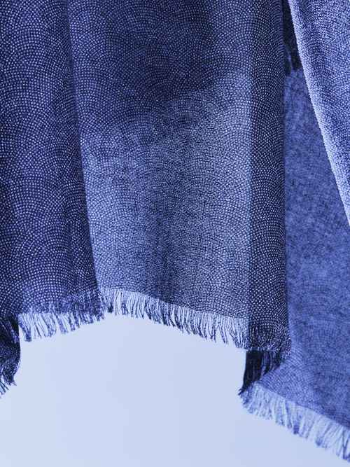 Hirose Dyeworks specialises in the craft of Edo komon stencil dyeing. The traditional fabric is kimono silk but the current head, Yuichi Hirose, has also applied the technique to beautiful cashmere and silk shawls, using the same-komon (shark skin) motif.