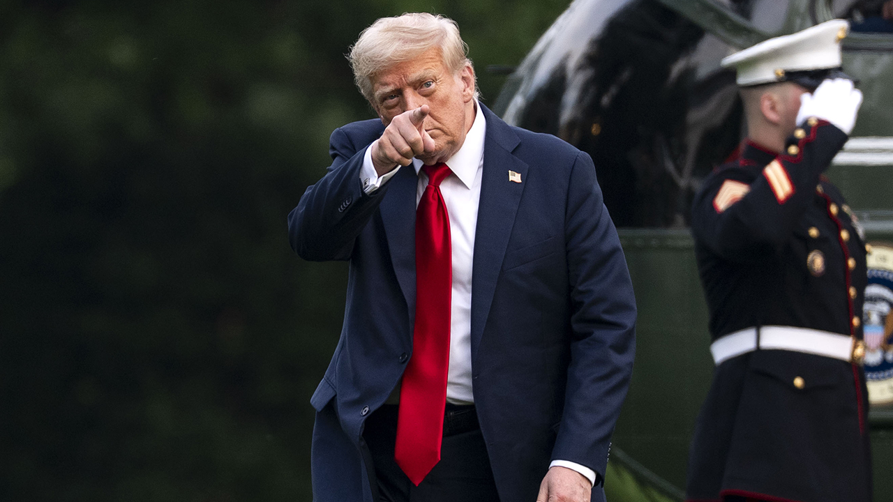 Mandatory Credit: Photo by BONNIE CASH/POOL/EPA/Shutterstock (15397857h) US President Donald Trump points after exiting Marine One on the South Lawn of the White House in Washington, DC, USA, 13 July 2025. Trump is returning after attending the FIFA Club World Cup 2025 Final match between Chelsea FC and Paris Saint-Germain, in East Rutherford, New Jersey. US President Trump returns to the White House, Washington, USA - 13 Jul 2025