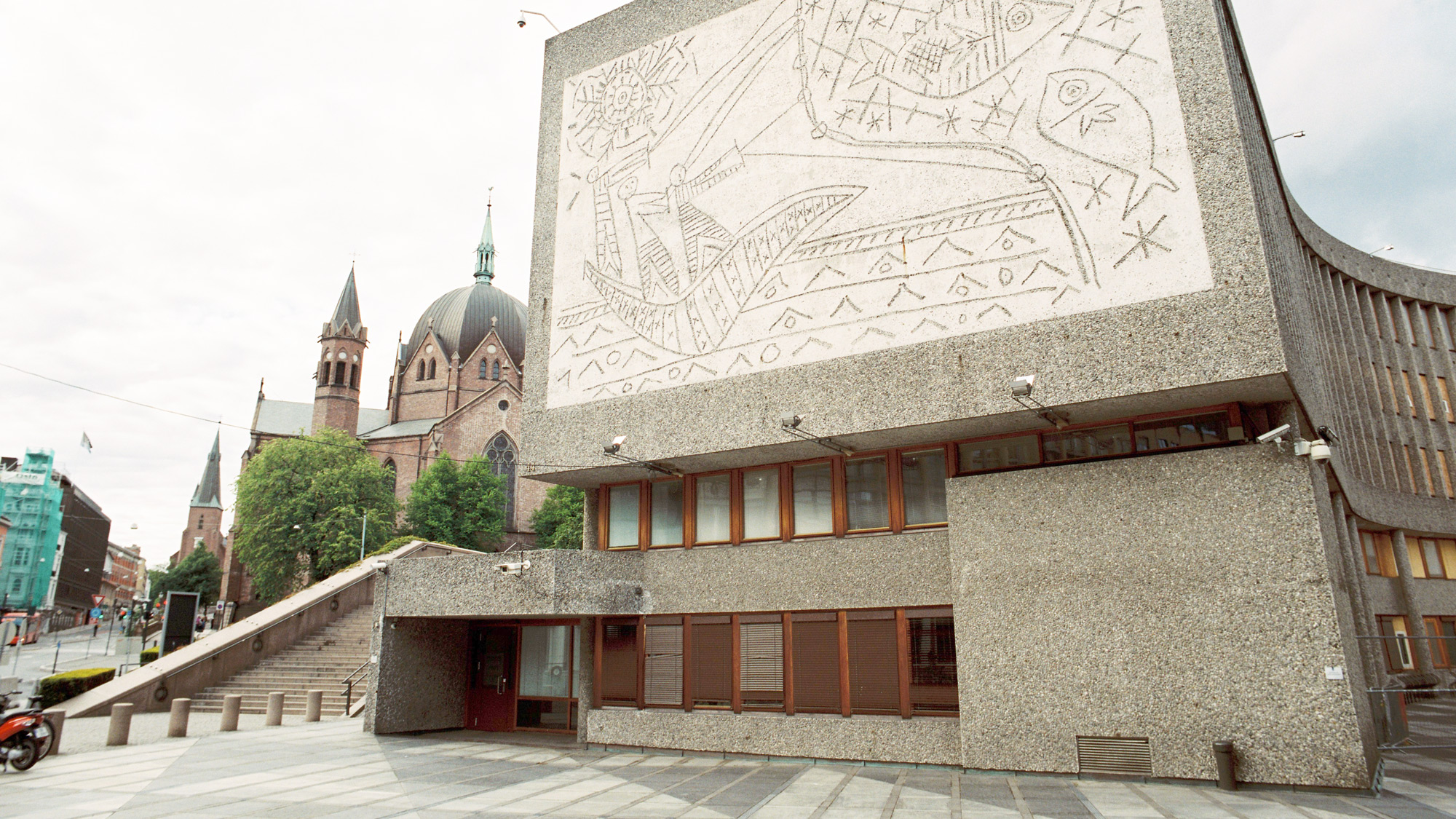 We’re in Oslo to hear the story of a former government building left in limbo since the 2011 terrorist attacks. But many argue in favour of its architectural value, mainly due to the large mural on its façade designed by Pablo Picasso.