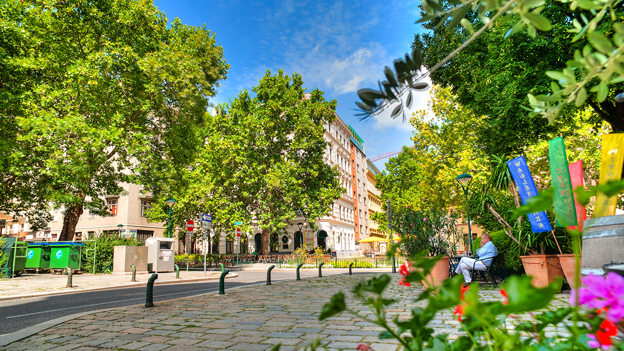 We visit a special kind of street in Vienna where traffic is limited to a walking pace and the roadway is open to pedestrians.