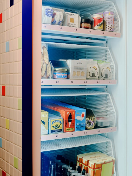 The result? A playful and welcome gesture of hospitality, with the vending machine sitting in a space designed by Anna Wu of Awa Studio, who drew inspiration from Australia’s milk bar culture. These corner shops dishing out snacks, sodas and, originally, milkshakes, formed the foundation for a design that’s about serving a community – in this case, those who frequent Paramount House. “We were very intentional about carrying the milk bar idea throughout the design. We recreated an Australian streetscape with a bright sign and mirrored door; a tiled portal greets you, referencing the iconic tiled facades of the classic milk bar,” says Wu. “The open lockers are supposed to make you feel like you’re peering into an ice cream freezer and the Paramart team did a great job of stocking the machines to really enhance that sense of wonder.”